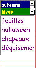 En choisissant ainsi sa classe, l'élève peut retrouver les listes de mots préparées par son enseignant(e). Ces mots lui serviront éventuellement dans la réalisation d'un texte.