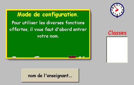 Le bouton nom de l'enseignant... vous permettra d'ajouter votre nom à la liste. Le nom que vous entrez ici sera utilisé pour la création du dossier (répertoire) de votre classe.