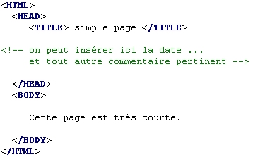Les commentaires n'apparaissent toutefois pas que dans la partie HEAD. Ils peuvent apparaître n'importe où dans le document puisqu'ils sont ignorés, ne sont pas interprétés, par l'explorateur. Il sont utiles pour "commenter" ou annoter des divisions importantes d'un texte, laisser des traces ou des informations de développement pour le concepteur lui-même ou éventuellement d'autres concepteurs ayant à reprendre ou corriger une page.
